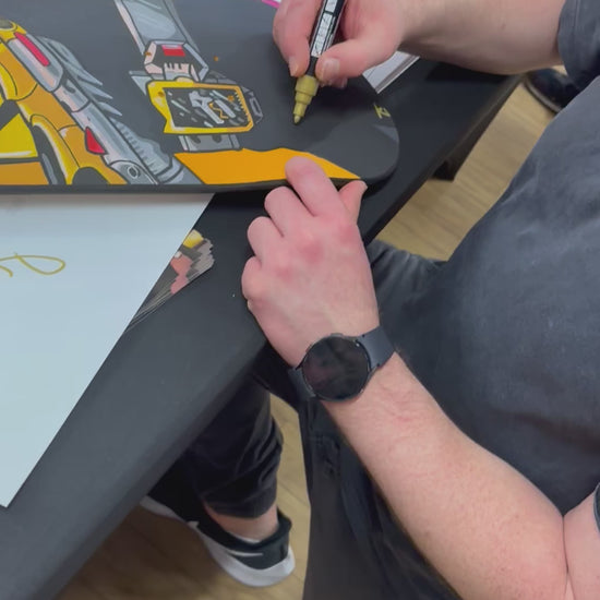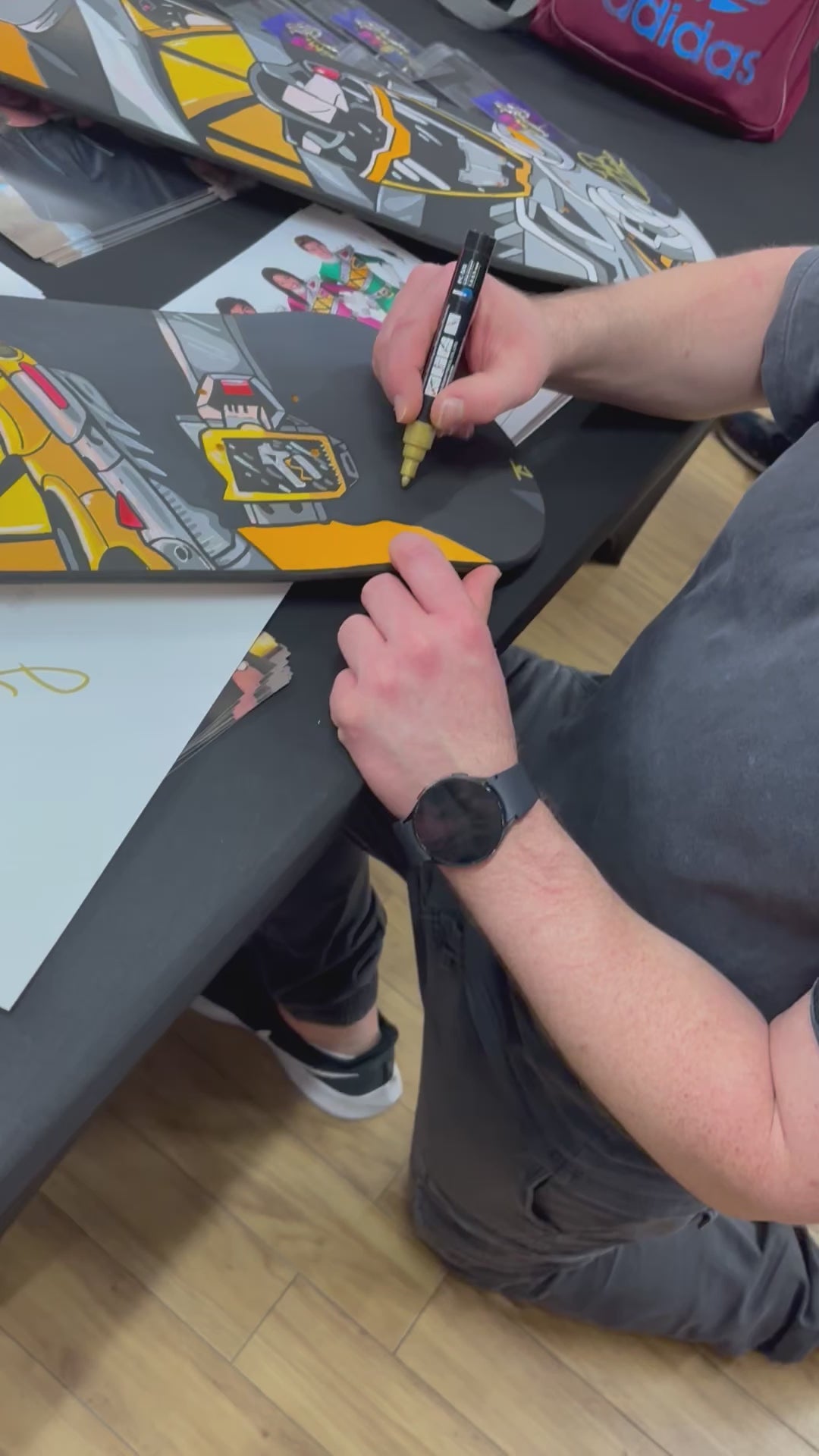 This one-of-a-kind Black Dino Charge Ranger skate deck is a true collector’s gem! Hand-painted with vibrant detail and personally autographed by James J. Davies, the actor himself, it’s perfect for adding a playful pop of nostalgia to your wall. Whether you’re a fan or just love unique art, this deck brings character and charm to any space.