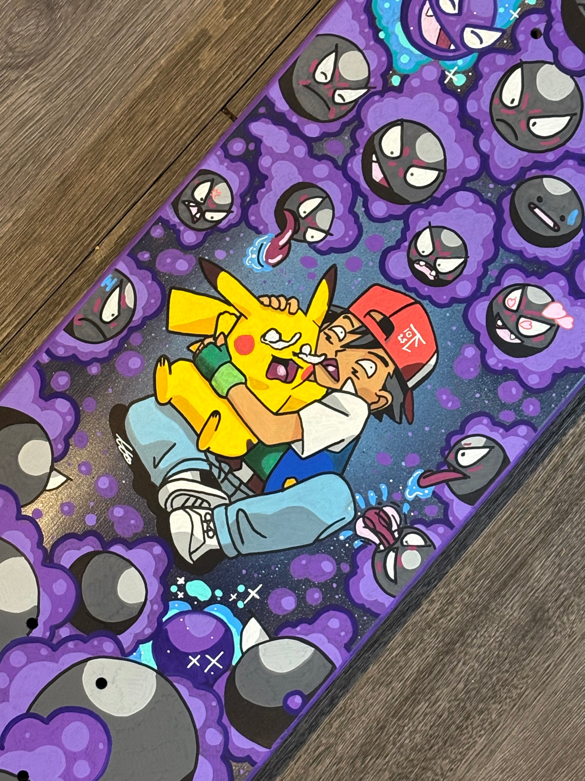Get ready for a unique addition to your wall with the Outbreak 1of1 handpainted skate deck. A terrifying original, perfect for fans of horror and anime alike. Can you spot all the hidden Easter eggs in this one-of-a-kind piece?